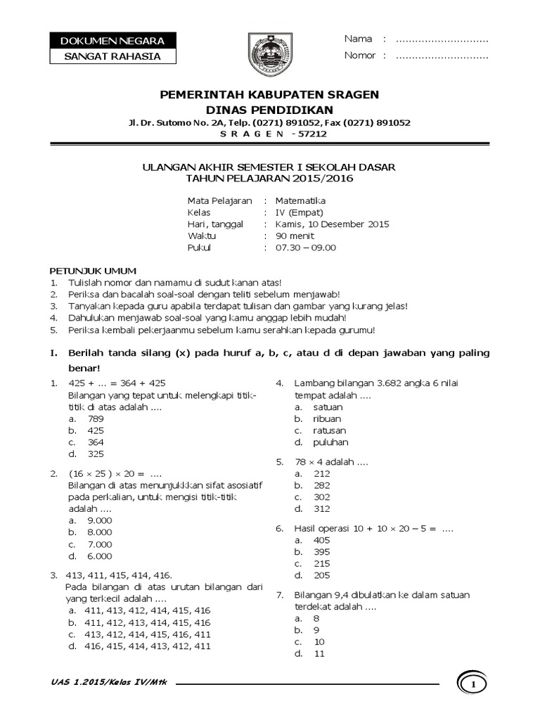 Soal Penilaian Akhir Semester Matematika Kelas 4 Edisi 2019 2020 Info Pendidikan Terbaru from 2.bp.blogspot.com Check spelling or type a new query. Soal pas matematika kelas 4 semester 2 pdf. Maybe you would like to learn more about one of these? We did not find results for: